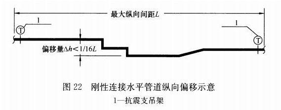8.3.5 剛性連接的水平管道,兩個相鄰的加固點間允許縱向偏移,水管及電線套管不得大于最大側(cè)向支吊架間距1/16,風管、電纜梯架、電纜托盤和電纜槽盒不得大于其寬度的兩倍(圖22)。